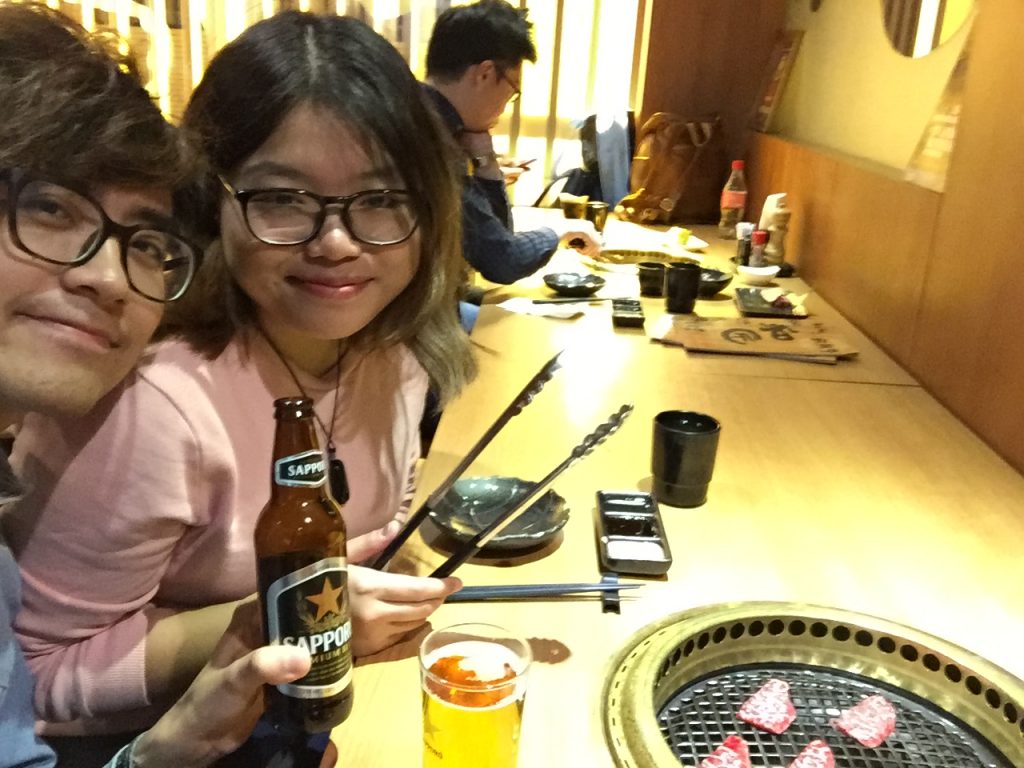 終於來到了晚上的重頭戲,我們預約了在佐敦的一家日本燒肉店,女友之前跟朋友在這邊用餐,一試就愛上了,比起很多連鎖的燒肉店,它的價錢的確不便宜,也沒有放題的套餐,餐牌上每個餐點都有固定的份量。我們用慶祝情人節的名義,為的就是可以豪華地吃一頓半頓頂級美食,是我們的最大願望。有時候我會問女友,我有嘗試找一些節目消遣時間,可是她不是興趣缺缺,就是覺得地點遠、嫌太累之類,最後我們的週末,不外乎就是看電影、吃東西,在這裡記敘我們約會的內容,其實也差不多。她告訴我,因為她就最愛這兩種活動,我想最重要的,是她願意一直跟我做這些事吧。